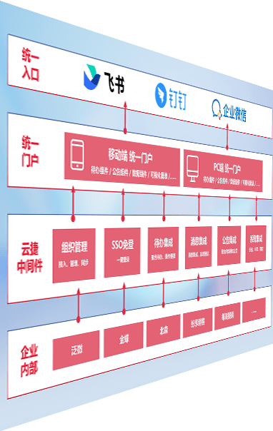 对协作平台提供支持服务,,,支持企业应用与协作平台对接,,,,包含组织同步、、、消息集成、、待办集成等。。。。支持目前主流的协作平台:钉钉、、、、企微和飞书。。。。